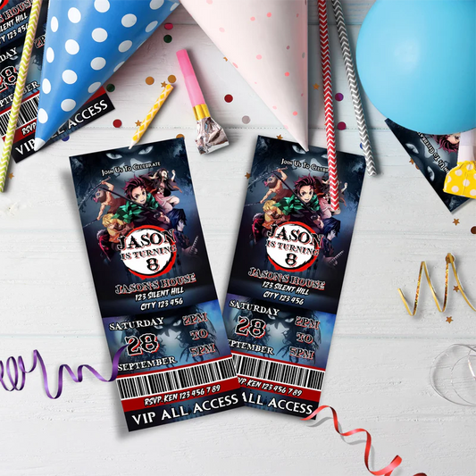 Demon Slayer Birthday Ticket Invitations Editable Design