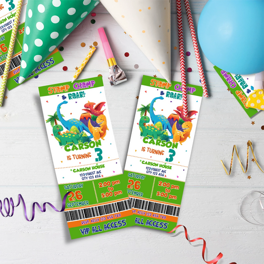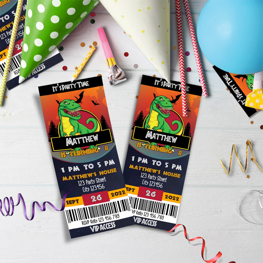 Dinosaur Birthday Ticket Invitations - Unique Entry to a Jurassic Party