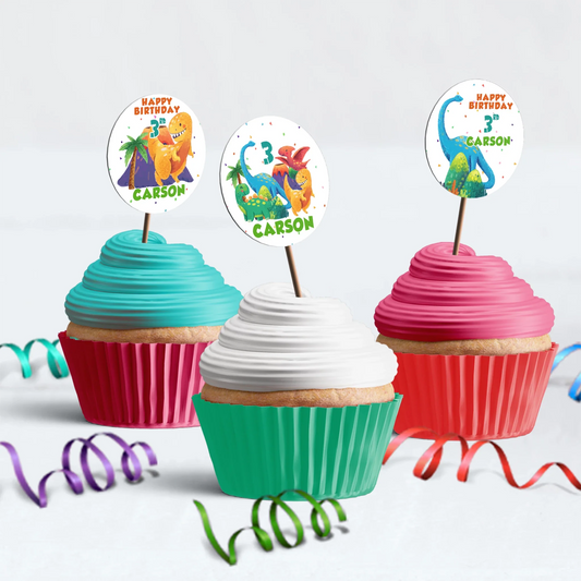Dinosaur Personalized Cupcakes Toppers