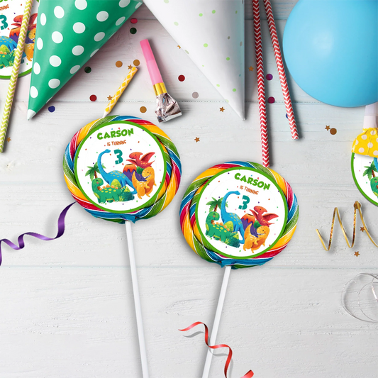 Dinosaur Lollipop Labels - Personalized Lollies for Dino-Themed Parties