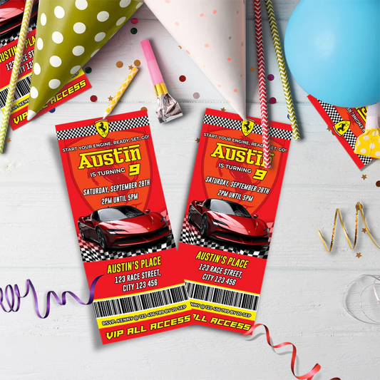 Ferrari Ticket Invitations Personalized Party Design for Birthdays