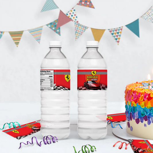 Ferrari Water Bottle Label Personalized Party Drink Wraps
