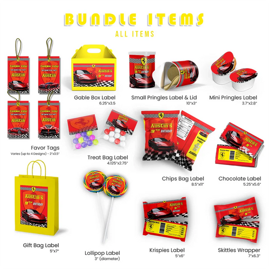 Ferrari Party Pack Template Bundle Personalized for Kids Birthday Events