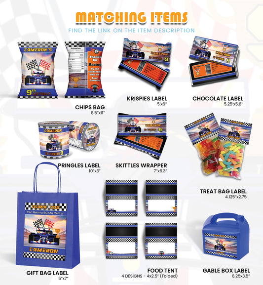 Formula One Personalized Digital Template Party Pack Bundle