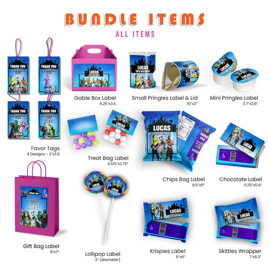 Fortnite Personalized Digital Template Party Pack Bundle for Birthday Party Decorations