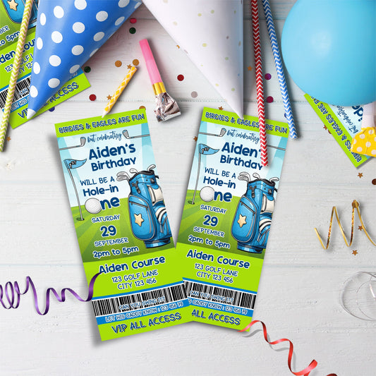 Golf Birthday Ticket Invitations - Customizable Invites for a Golf-Themed Birthday Bash
