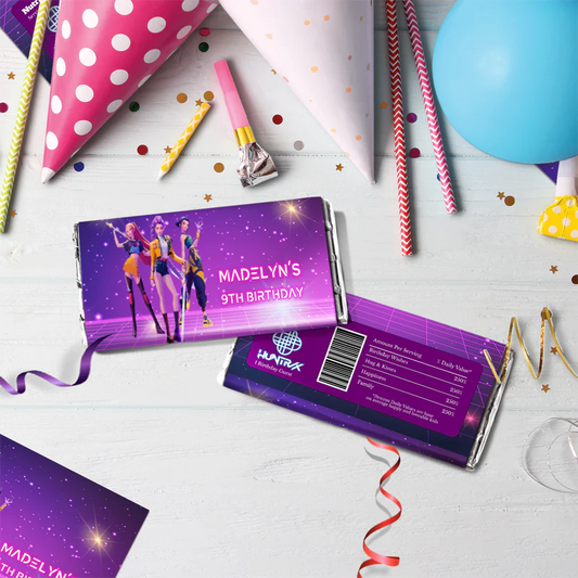 Huntrix Kpop Demon Hunters chocolate label party favor wrap