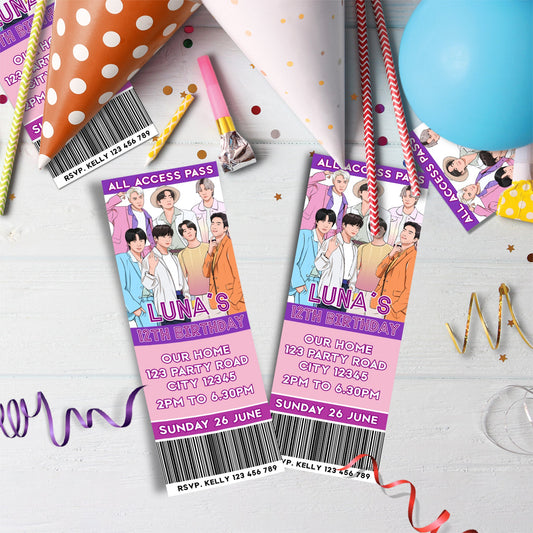 Impress Your Guests with BTS - Bangtan Boys Personalized Birthday Ticket Invitations