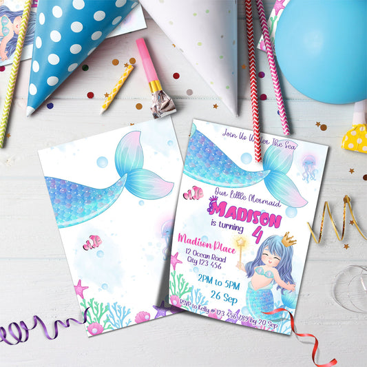 Invite Friends with Mermaid Personalized Birthday Card Invitations - Dive into Fun