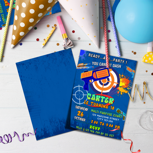 Invite in Style: Dart Gun Personalized Birthday Card Invitations for Exciting Birthdays