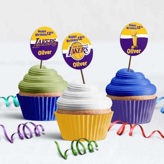 LA Lakers Cupcakes Toppers Printable Round Party Decorations