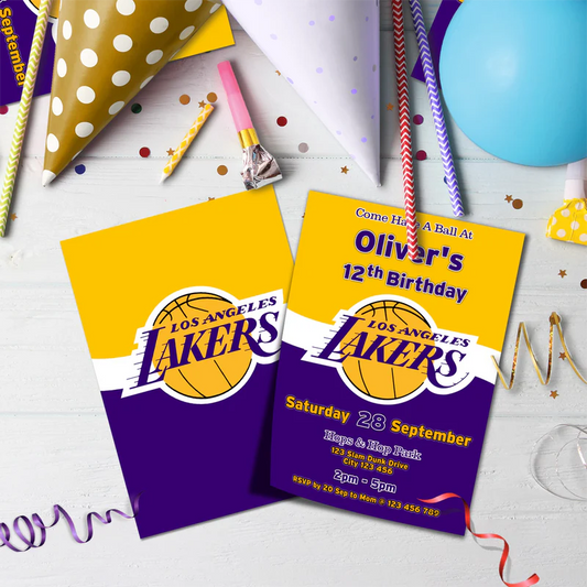 LA Lakers Card Invitations Custom Printed Party Invite Design