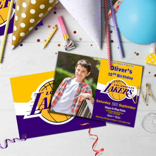 LA Lakers Photo Card Invitations Personalized Basketball Theme