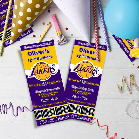 LA Lakers Ticket Invitations Custom Sports Theme Party Invite