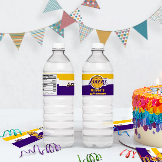 LA Lakers Water Bottle Label Custom Printable Party Wrap