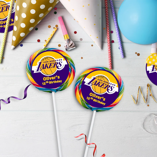 LA Lakers Lollipop Label Round Party Favor Sticker Design