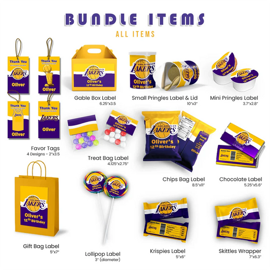 LA Lakers Party Pack Digital Template Bundle Custom Printable Decorations