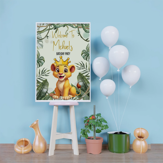 Lion King of the Jungle Welcome Sign for Birthday or Party Entrance Decor