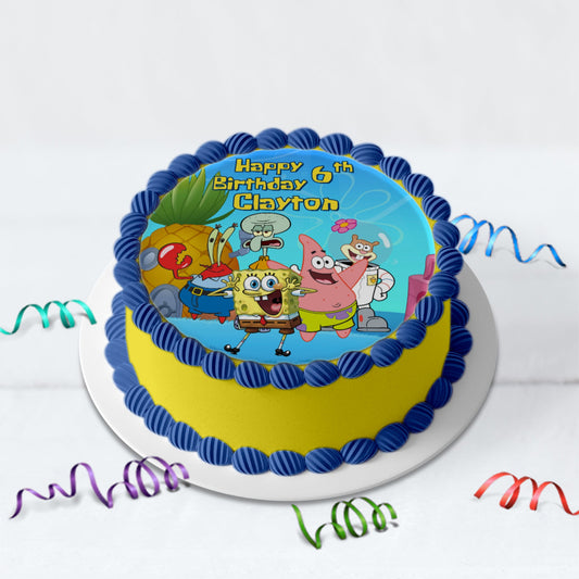 Make Your Cake Stand Out with Spongebob Personalized Sheet Cake Images - Round