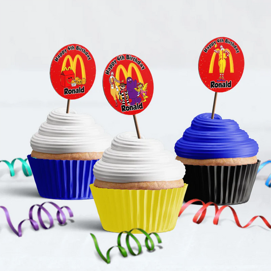 McDonalds Cupcake Toppers Personalized Round Party Decorations for Kids