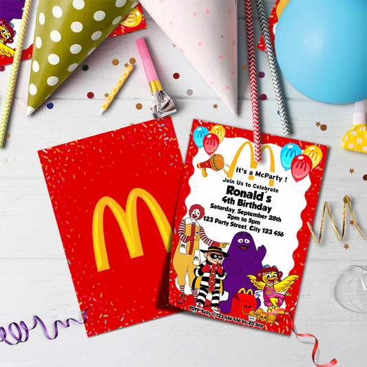 McDonalds Birthday Card Invitations Personalized Kids Party Stationery