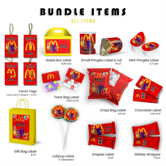 McDonalds Party Pack Digital Template Bundle for Kids Birthday Celebration