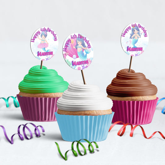 Mermaid Personalized Cupcakes Toppers - Make Your Party Treats Extra Special