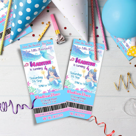 Mermaid Personalized Birthday Ticket Invitations - Your Ticket to a Magical Celebration