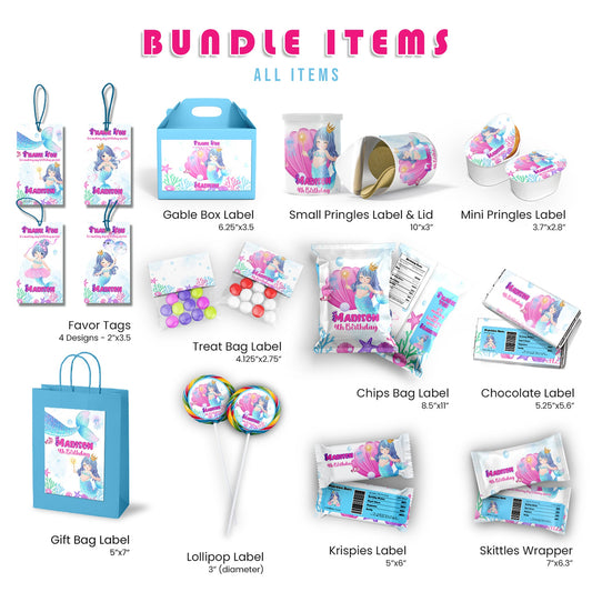 Mermaid Personalized Digital Template Party Pack Bundle with Editable Birthday Decorations