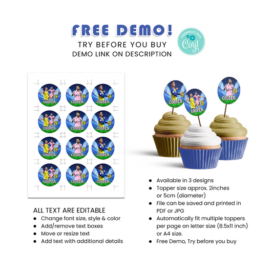 Messi & Ronaldo Personalized Cupcakes Toppers - A Sweet Addition to Your Party