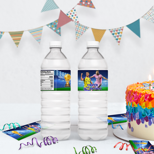 Messi & Ronaldo Water Bottle Label - Keep Your Guests Hydrated in Style