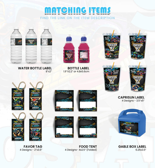 Monster Jam Personalized Digital Template Party Pack Bundle