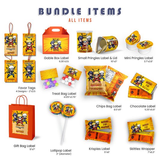 Naruto Personalized Digital Template Party Pack Bundle for Editable Anime Birthday Decorations