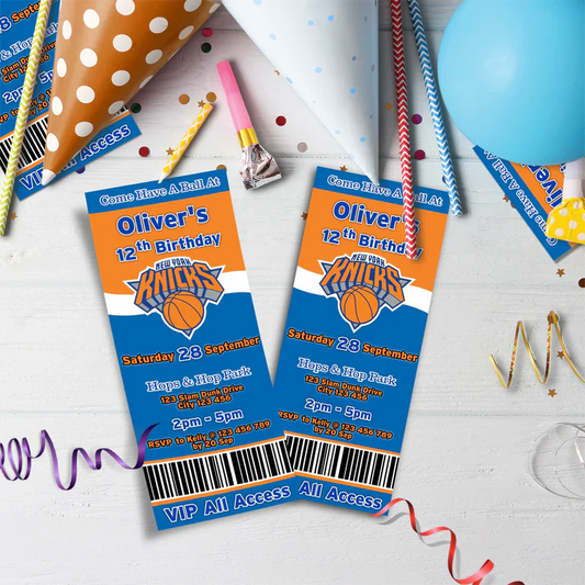 New York Knicks Birthday Ticket Invitations Custom Printable Design