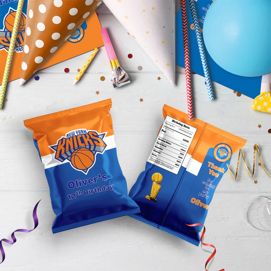 New York Knicks Chips Bag Label Custom Basketball Birthday Snack Wrap