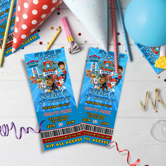 Paw Patrol Personalized Birthday Ticket Invitations : Unique Invites for a Special Day