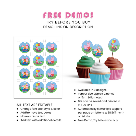 Peppa Pig Personalized Cupcakes Toppers : Add Fun to Your Party