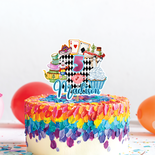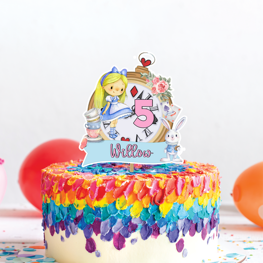 Personalized Alice in Wonderland Cake Toppers - Unique, Custom-Made, Perfect for Birthday Parties and Celebrations
