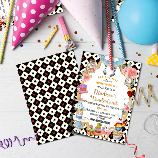 Personalized Alice in Wonderland Birthday Card Invitations - Unique, Custom-Made, Perfect for Inviting Loved Ones