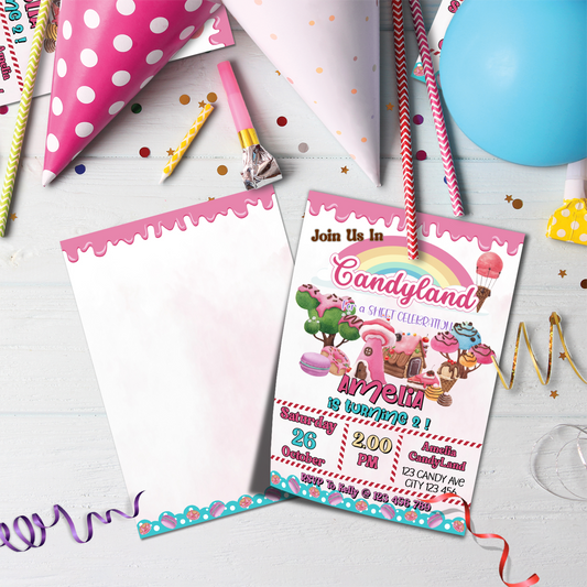 Personalized Birthday Card Invitations for a Candy Land Themed Party