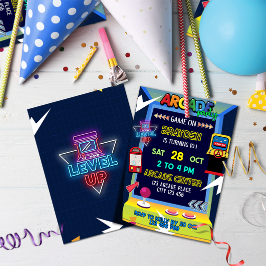 Personalized Arcade Games Birthday Card Invitations - Custom Made, Perfect for Inviting Loved Ones