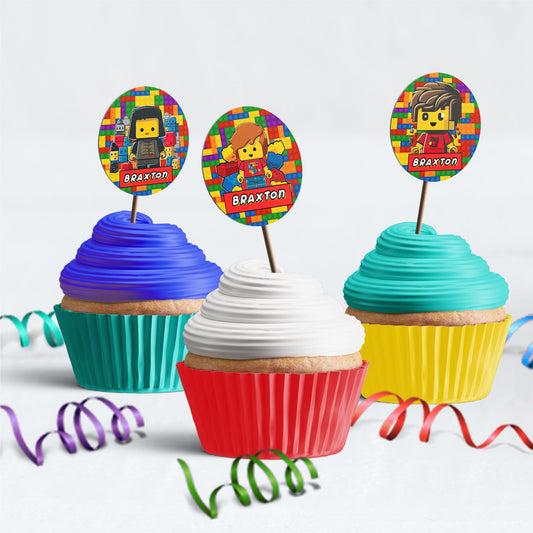 Personalized Cupcakes Toppers with Lego Theme - Sweeten Your Special Day