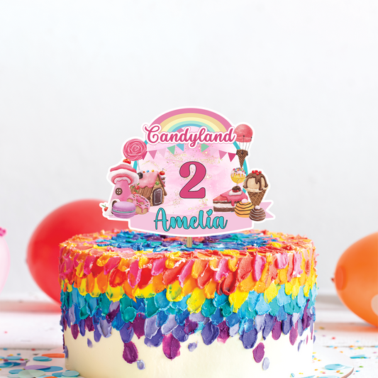 Personalized Cake Toppers for a Candy Land Themed Celebration