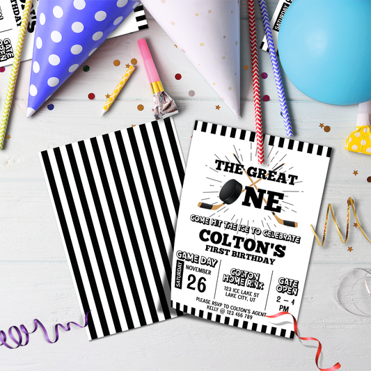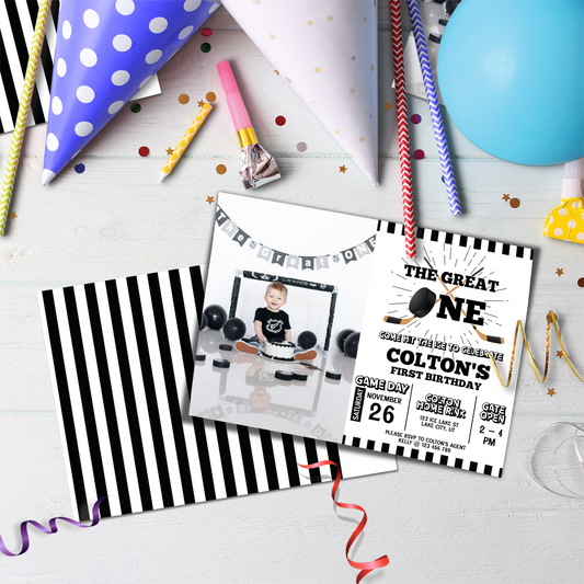 Personalized Hockey 1st Birthday Card Invitations - Invite Your Guests in Style