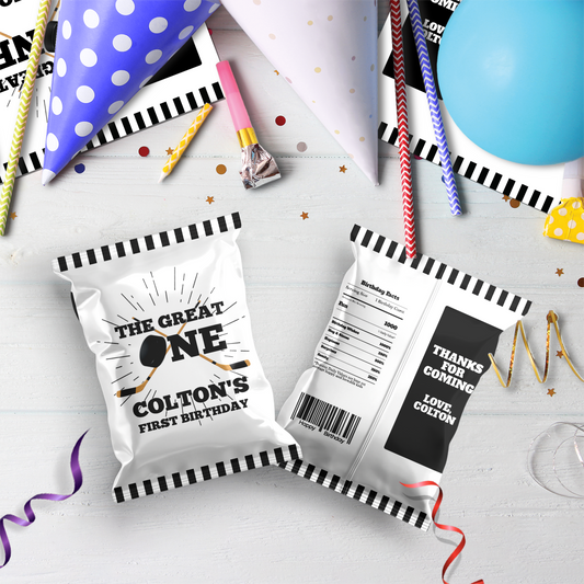 Personalized Hockey 1st Birthday Chips Bag Label - Add a Personal Touch to Your Party Snacks