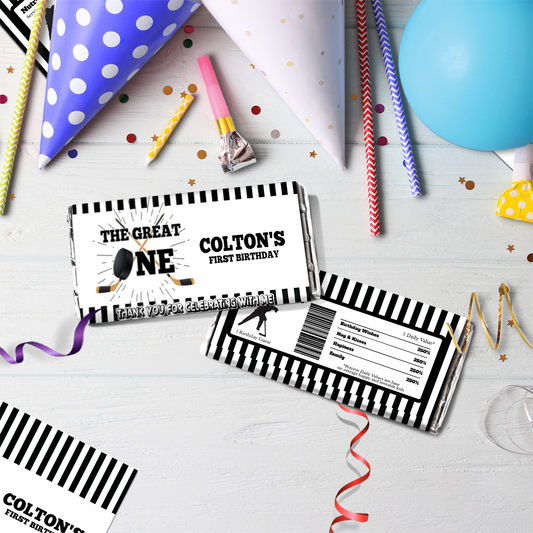 Personalized Hockey 1st Birthday 1.55oz Hershey’s Chocolate Label - Sweeten Your Party with Personalized Chocolates