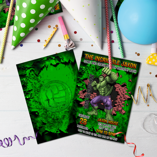 Personalized Incredible Hulk Birthday Card Invitations - Make Your Invites Stand Out