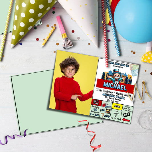 Photo Card Invitations Personalized with Monopoly Board Game Design