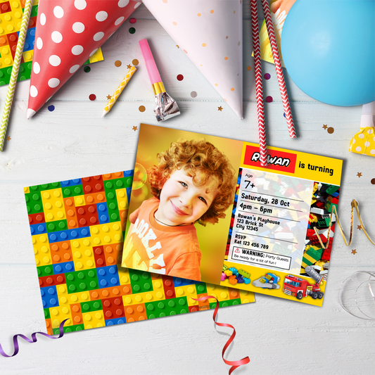 Photo Card Invitations with Bricks, Building Blocks Personalization - Create Lasting Memories