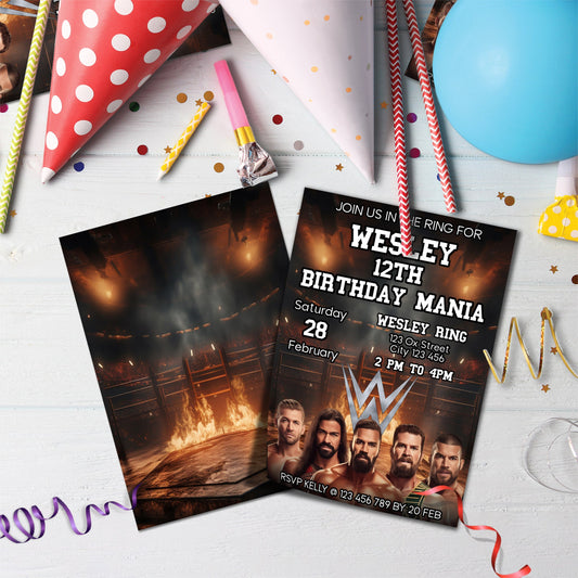 Personalized WWE WrestleMania Birthday Card Invitations - Invite Your Friends in Style